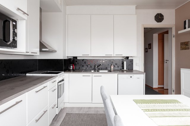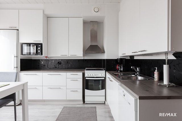 - Jääkaappipakastin, liesi, liesituuletin, ja astianpesukone