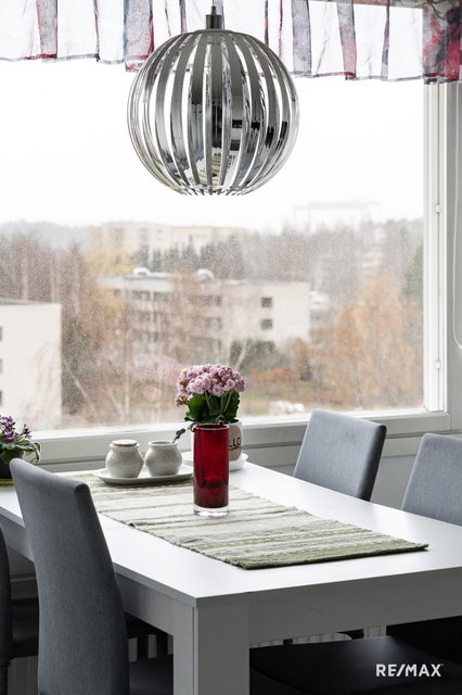 Sijainti on erinomainen: lähellä on päiväkoteja, kouluja ja korkeakoulu, ja alueella on hyvät liikenneyhteydet niin julkisilla kuin omalla autolla. Lisäksi pyöräilyreitit ovat erinomaiset, mikä tekee liikkumisesta helppoa.