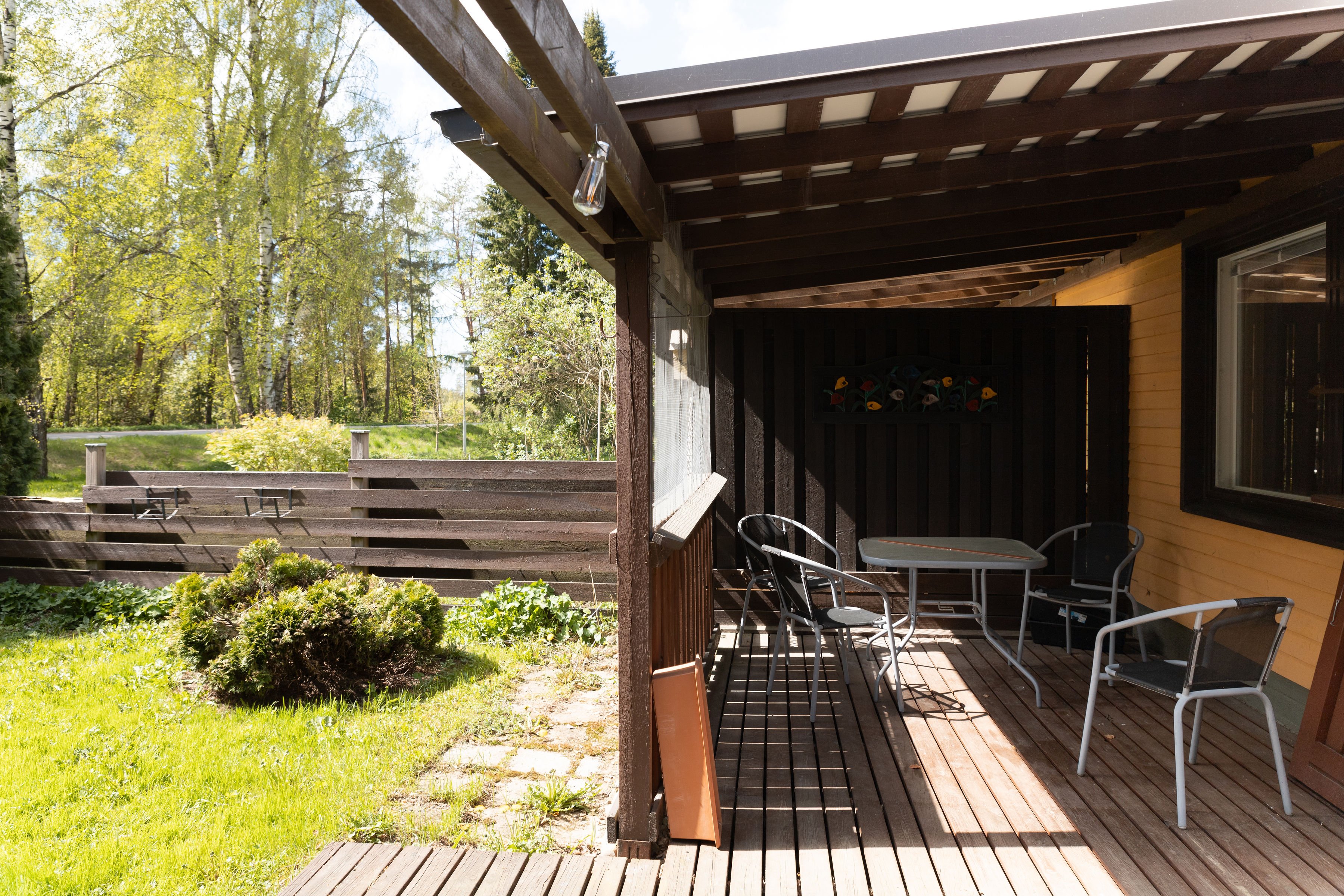 - Takapihalla osin katettu terassi + patio