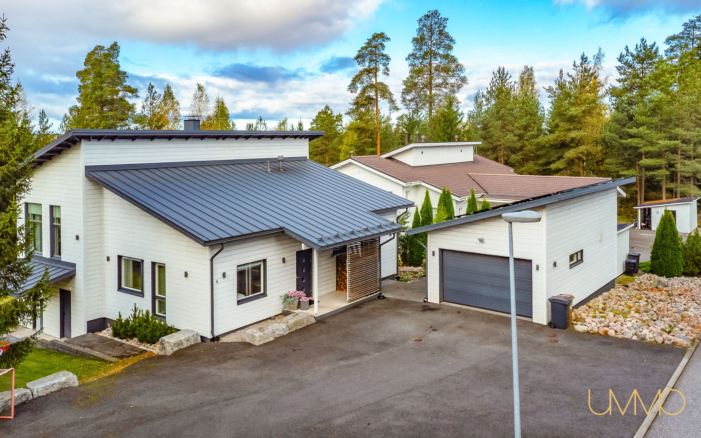- Korkea viistokatto. Ilmalämpöpumppu. Varaava takka.