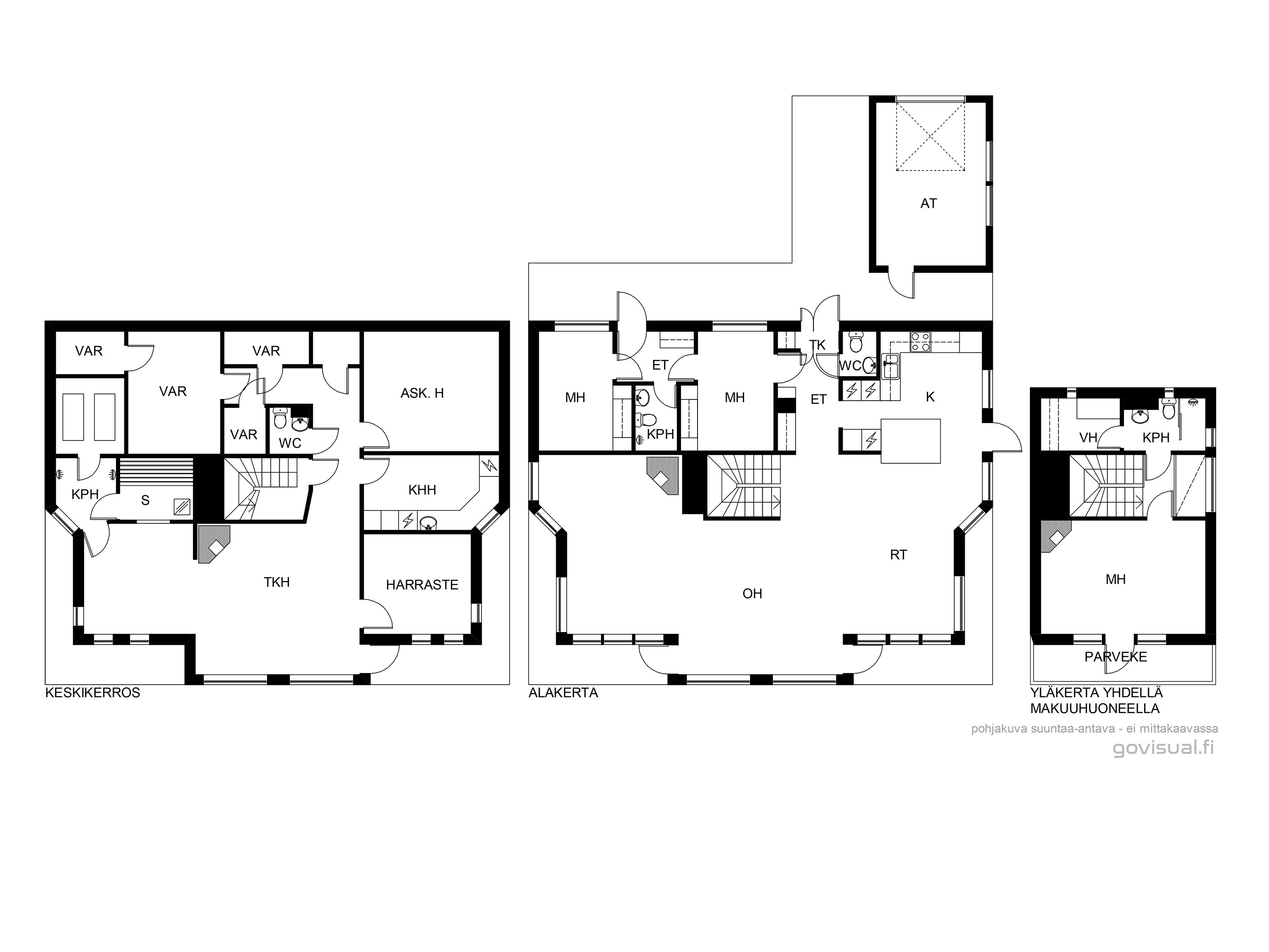 - varastotilat 3 kpl, kaapistot ja seinäkaapit