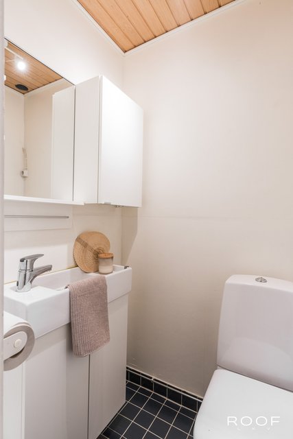 - Pesukoneliitäntä, lattialämmitys, pyykkikaapit, ja pesuallas