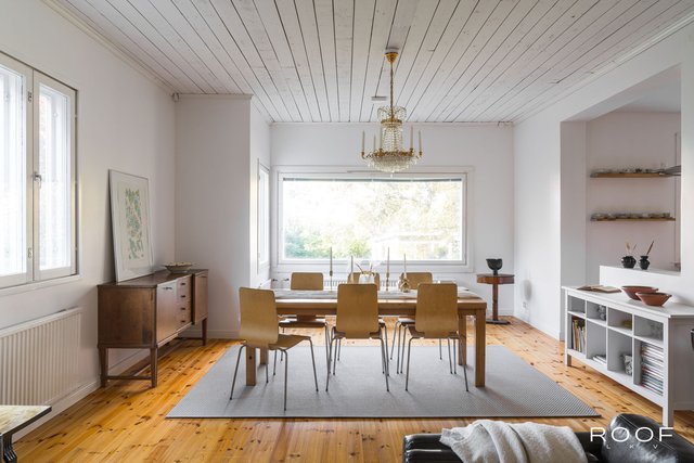 Tänne mahtuu isokin perhe asumaan, ja monipuoliset tilat takaavat jokaiselle omaa rauhaa ja siten saadaan sopu säilymään. Keskikerroksessa on kivat avarat oleskelutilat. Koko keskikerroksessa on kaunis puulattia ja muita näyttäviä yksityiskohtia. Jokaisenssa kerroksessa olevat vessat myös helpottavat niin arkea kuin myös kun talo täyttyy vieraista.