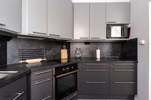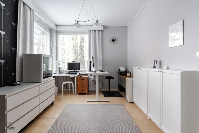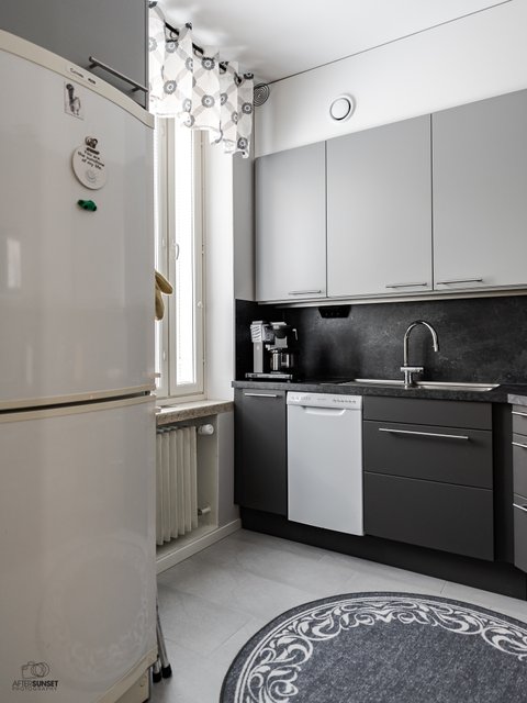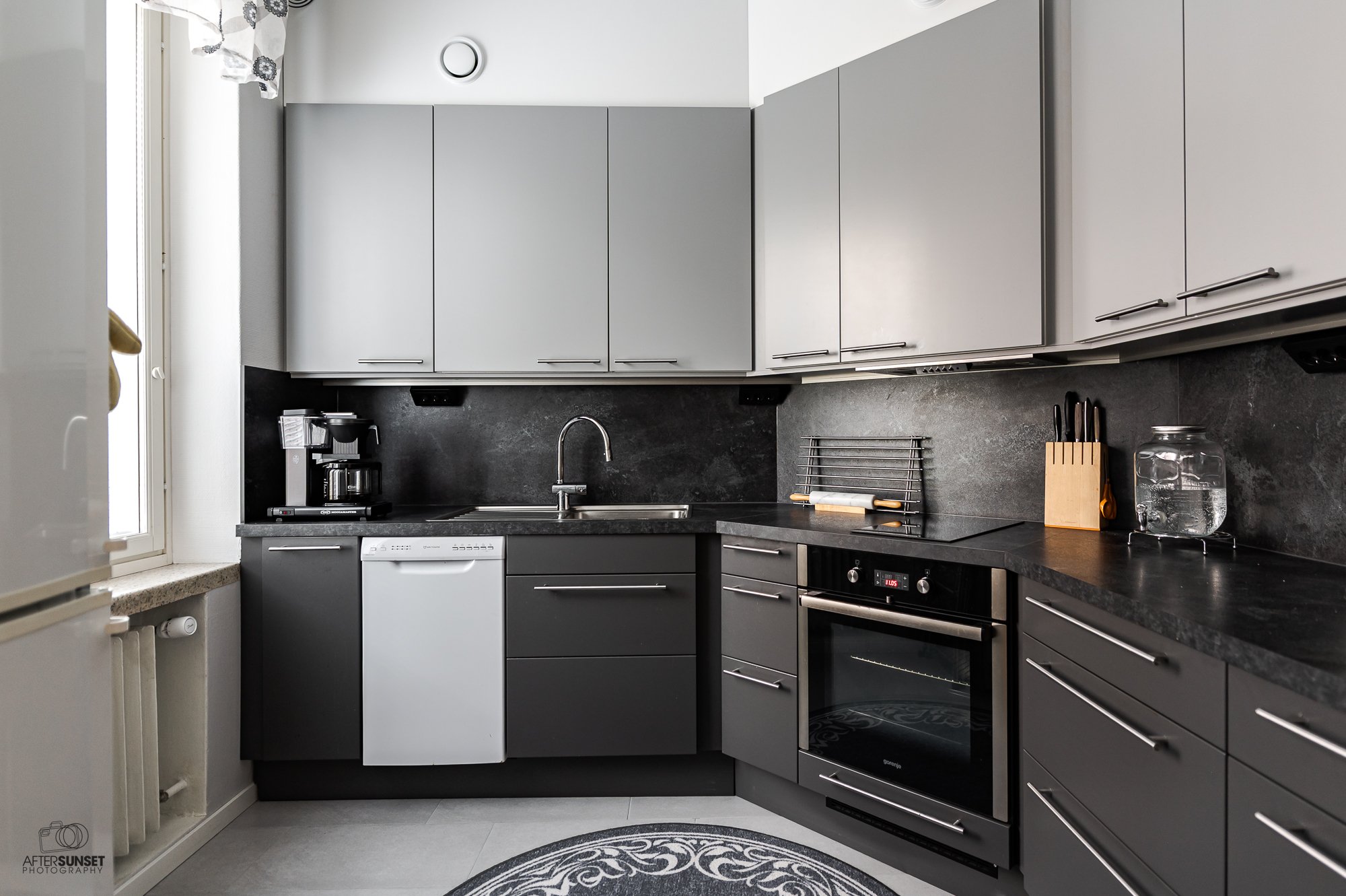 - Jääkaappi/pakastin, kiertoilmauuni, induktioliesi, astianpesukone, liesituuletin. Lattia laatoitettu. Seinät maalattu.