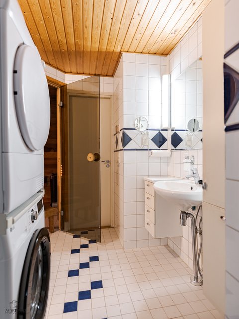 - Suihku, peilit, pesuallas. Pesukoneliitäntä. Kokonaan laatoitettu. Lattialämmitys.