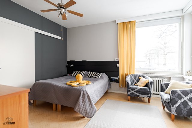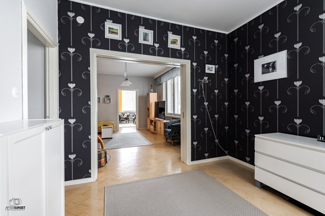 - Parkettilattia, seinät maalattu/lasikuitutapetti.