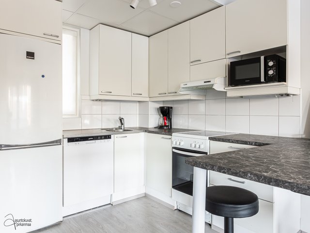 Tämä koti tarjoilee modernia ja mukavaa asumista. Asunnossa on valoisa olohuone, joka yhdistyy saumattomasti keittiöön, jossa käytännöllinen saareke ja reilusti työskentelytilaa. Makuuhuoneen erottaa olohuoneesta liukuovi. Hiljattain päivitetyt lattiat luo raikkaan ilmeen koko asuntoon. Asunnon kylpyhuone on hyvin varusteltu, ja omassa saunassa rentoudut kiireisen päivän päätteeksi.