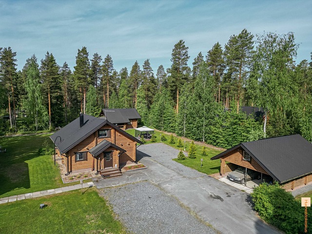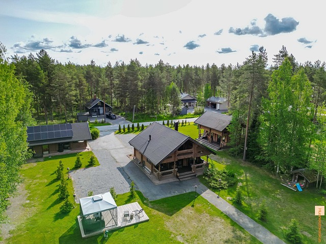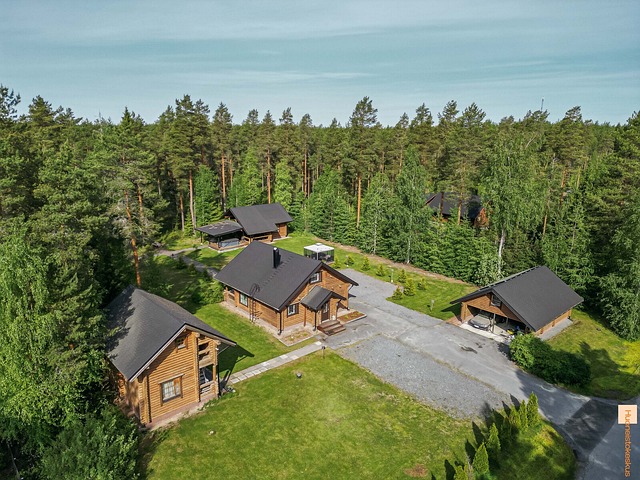 Suuri, lähes 3000 m² tontti huolitellulla pihamaalla. Kiinteiställö sijaitsee vuonna 2005 valmistunut hirsirakenteinen huvila, joka on varustettu reilulla keittiöllä ja pesutiloille. Pesuhuoneessa hyvin tilaa myös kodinhoitotarpeille. Lisämajoitustilaa löytyy sekä aitasta että takapihalle sijoitetusta suuresta ulkosaunasta. Saunarakennuksen terassille sijoitetussa ulkoporealtaassa kylpee suurempikin joukko majoittujia.