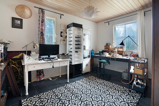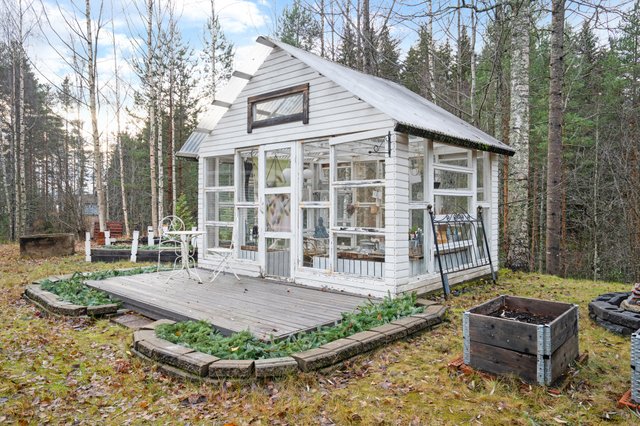 - Kiinteistöllä autotalli jonka yhteydessä lämmin varastotila, kellari sekä nukkuma-aitta, auto/venekatos. puuliiteri, kasvihuone jolla oma terassi, tynnyrisauna.