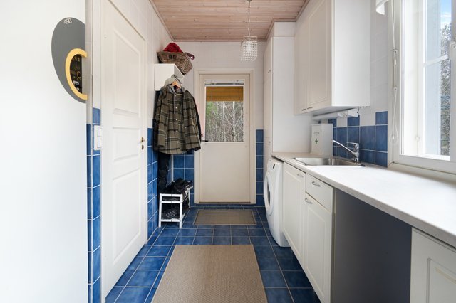 - Pesukoneliitäntä, lattialämmitys, pesuallas, lattiakaivo, lastenhoitopöytä/taso, silityspöytä/taso, kurapiste, pöytätaso, ja keskuspölynimuri