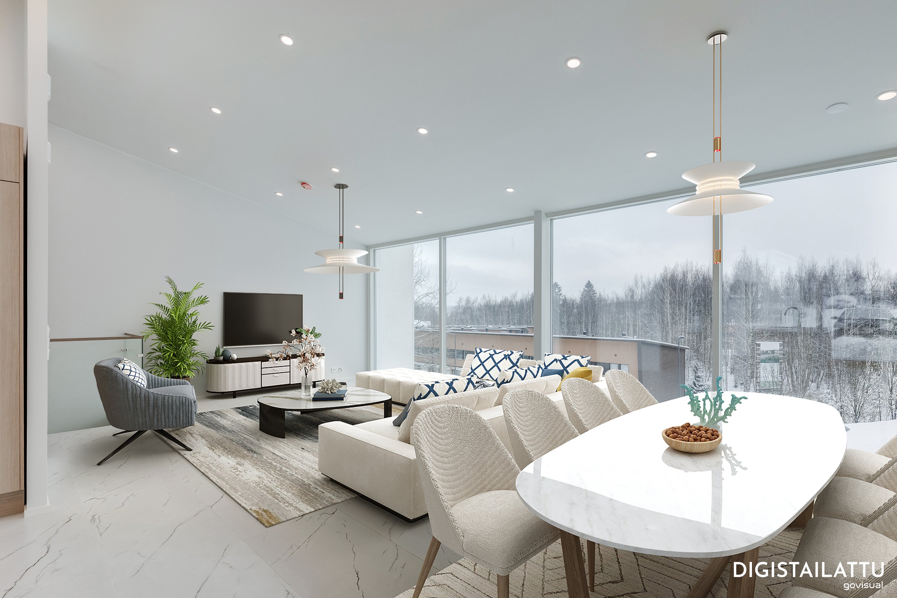 Espoon Henttaassa odottaa upea uusi koti, joka tarjoaa modernia asumismukavuutta ja tilaa koko perheelle! Tämä kahdessa kerroksessa sijaitseva koti on valoisa ja ilmava ja sen suuret ikkunat tulvivat luonnonvaloa sisään. Lattiasta kattoon olevista ikkunoista on upea näkymä sillä huoneisto sijaitsee rinteessä. Lämmitysjärjestelmänä maalämpö vesikiertoisella lattialämmityksellä. Terassinpuoleiset ikkunat ovat lasiliukuovet, joten kesällä voit avartaa oleskelutilaa mukavasti myös terassille. Upea kattoterassi lasikaiteineen lisää asumismukavuutta. Piha on helppohoitoinen ja sieltä löytyy pieni viheraluekin istutuksia varten. Autokatos sisäänkäynnin vieressä, jossa latausvalmius jopa kahdelle autolle.