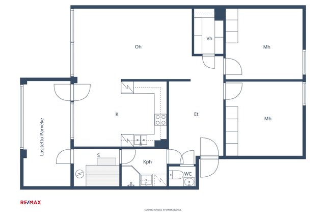 - Isännöitsijäntodistuksen mukainen, Yhtiöjärjestyksen mukainen, (Pinta-ala ei ole tarkistusmitattu ja todellinen pinta-ala voi olla suurempi tai pienempi, kuin ilmoitettu)