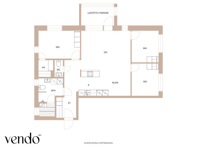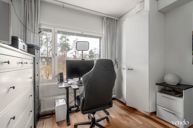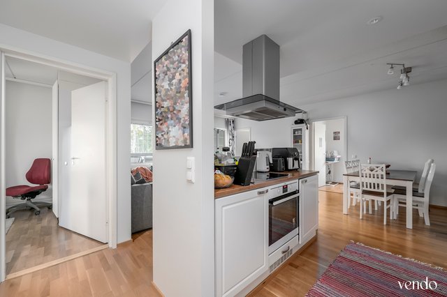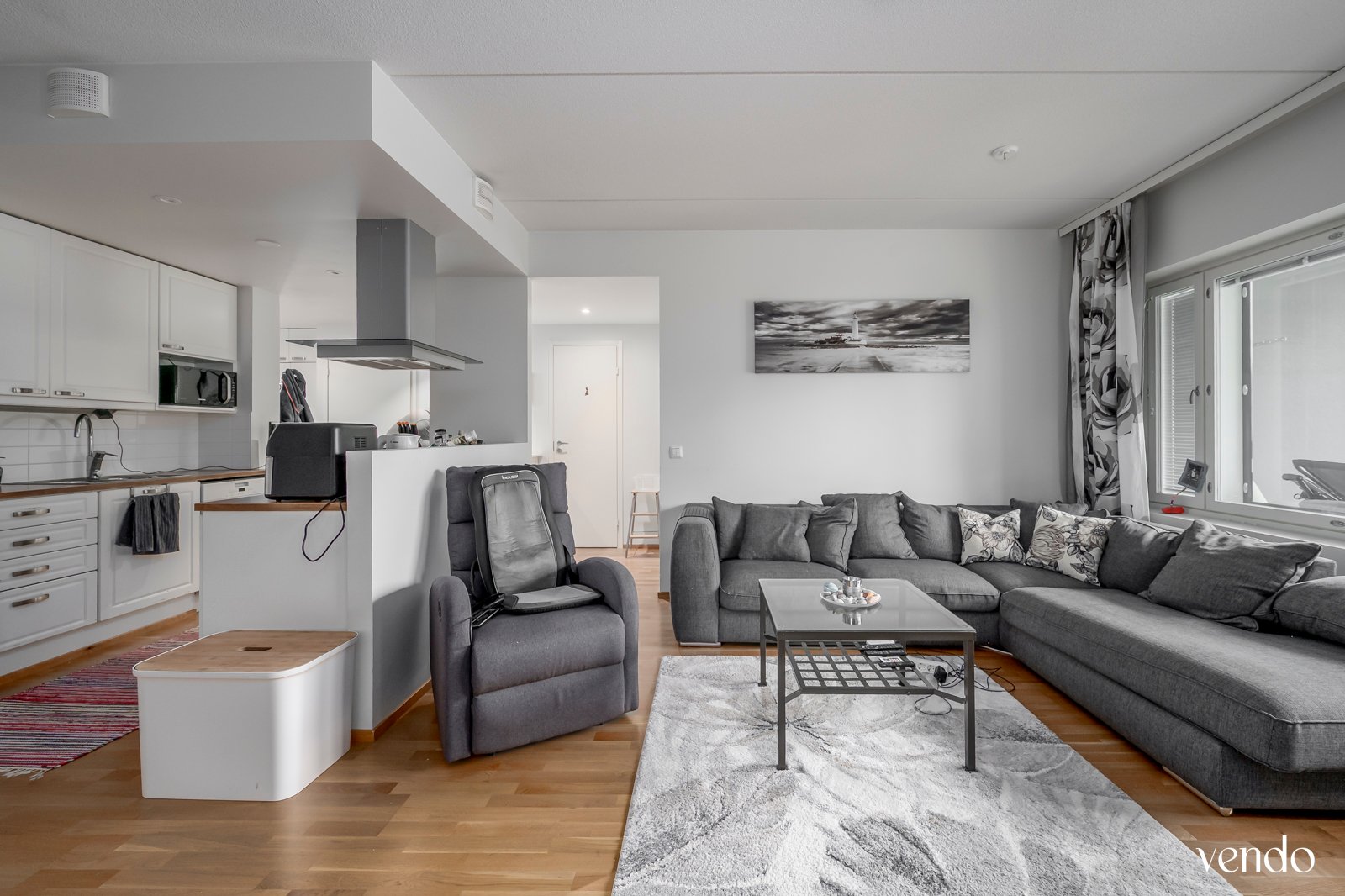Asunnossa on kolme makuuhuonetta, joten tilaa riittää isommallekin perheelle tai etätyöskentelyyn. Olohuone ja keittiö muodostavat yhtenäisen, avaran tilan, jossa on keittiösaareke. Lasitettu parveke tarjoaa viihtyisän paikan rentoutumiseen ympäri vuoden.