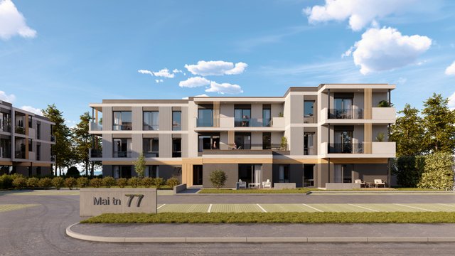 Mai 77-6 on hyvin suunniteltu kolmio, joka sijaitsee kerrostalon ensimmäisessä kerroksessa. Asunto koostuu avoimesta keittiö-olohuoneesta, kahdesta makuuhuoneesta, kylpyhuoneesta ja eteisestä. Lattiaan asti ulottuvat ikkunat ja tilava parveke (10,3 m²) avautuvat aamu- ja ilta-auringon suuntaan.