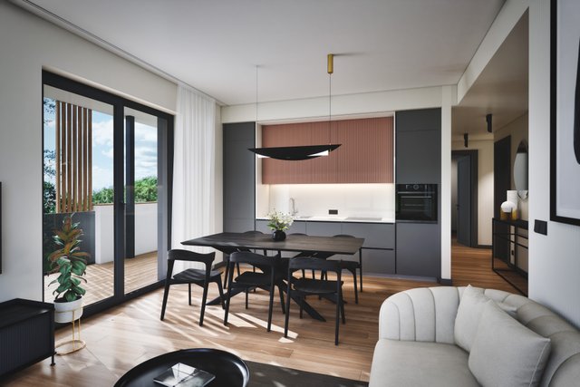 Mai 77-19 on hyvin suunniteltu kaksio, joka sijaitsee kerrostalon kolmannessa kerroksessa. Asunto koostuu avoimesta keittiö-olohuoneesta, makuuhuoneesta, kylpyhuoneesta ja eteisestä. Lattiaan asti ulottuvat ikkunat ja tilava parveke (6,3 m²) avautuvat illan auringon suuntaan.