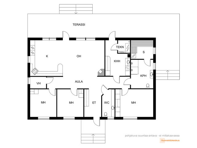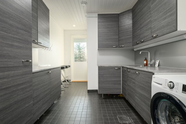 - Pesukoneliitäntä, lattialämmitys, pesuallas, lattiakaivo, ja tila pesutornille