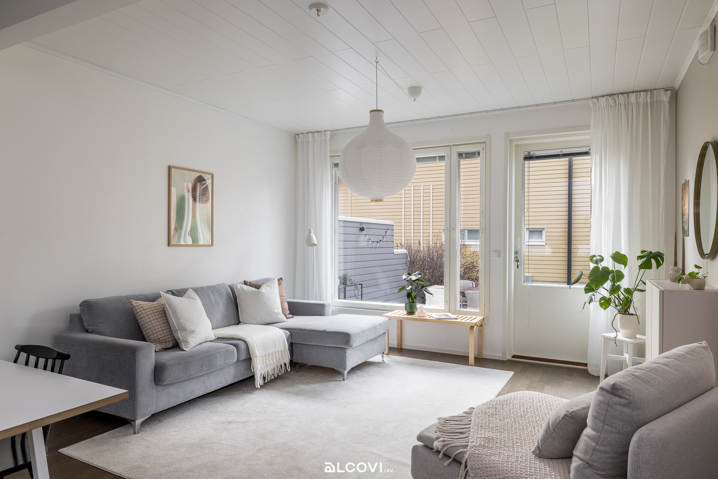 Raikas avokeittiö yhdistyy olohuoneen kanssa kutsuvaksi tilaksi, josta löytyy luonnollinen paikka arjen toiminnoille. Suurista ikkunoista luonnonvalo pääsee kauniisti osaksi sisustusta. Olohuone jatkuu tilavalle terassille, joka kutsuu nauttimaan kesäpäivistä. Suojaisa piha-alue tarjoaa paitsi terassin markiiseineen, myös tilaa lasten leikkeihin sekä istutuksille. Yläkerran rauhaan jäävät makuuhuoneet kiintokaapistoineen, sekä kylpyhuone ja sauna. Kylpyhuone on viimeistelty ajattomin materiaalein, ja sauna tarjoilee mainiot löylyt! Sisäänkäynnin yhteydessä sijaitsee sähköistetty autopaikka sekä ulkovarasto hyvine säilytystiloineen.