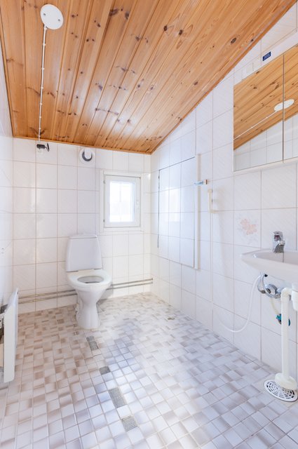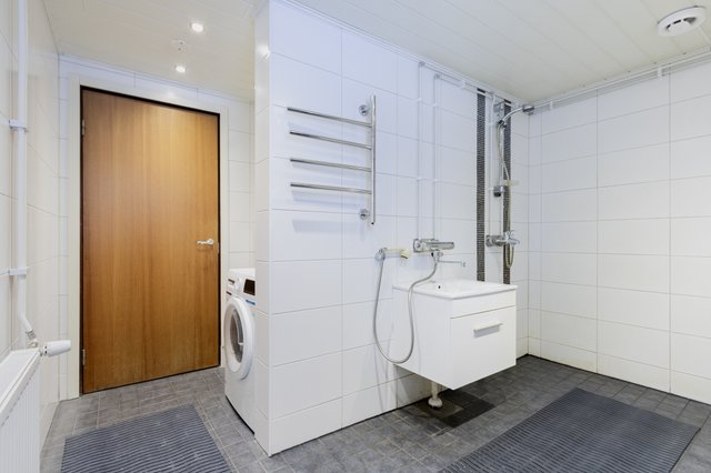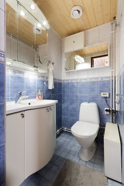 - Vuonna 2010 kylpyhuone ja sauna uusittu Varustus: pesukoneliitäntä, wc-istuin, suihku, peilikaappi, kiinteät valaisimet, kylpyhuonekaapisto. Lattia: laatta. Seinät: kaakeli.