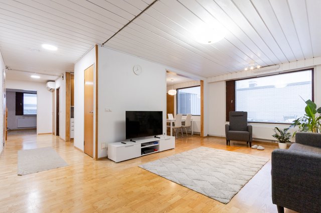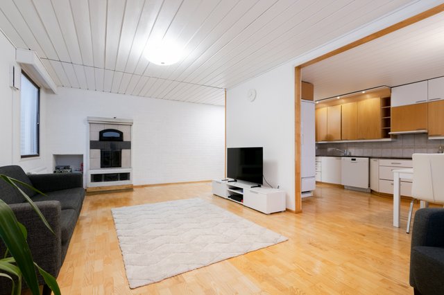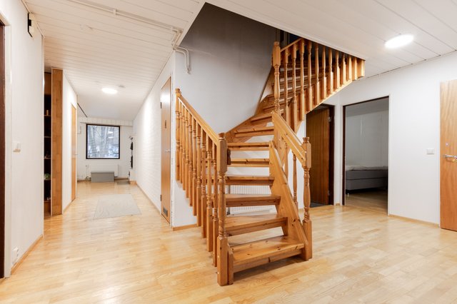 Kodissa on neljästä viiteen makuuhuonetta, joten tilaa riittää suuremmallekin perheelle. Olohuoneen parkettilattia ja tapetoidut seinät luovat viihtyisän tunnelman. Asunnossa on kaksi erillistä wc:tä sekä tilava pesuhuone sekä sauna.