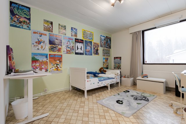 - Seinät: maalattu, tapetti. Lukumäärä: 4-5 Makuuhuoneissa yhtä huonetta lukuunottamatta on parketti ja yhdessä huoneessa muovimatto