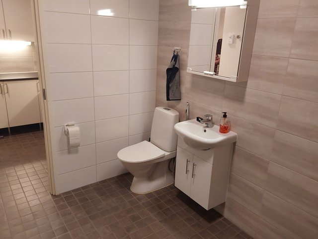- Peilikaappi, pesuallas, allaskaappi, bideesuihku, wc-istuin, suihku.