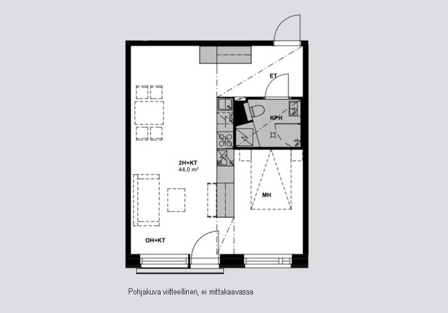- Jääkaappipakastin, erillisuuni, liesi, liesituuletin, mikroaaltouuni, ja astianpesukone