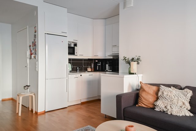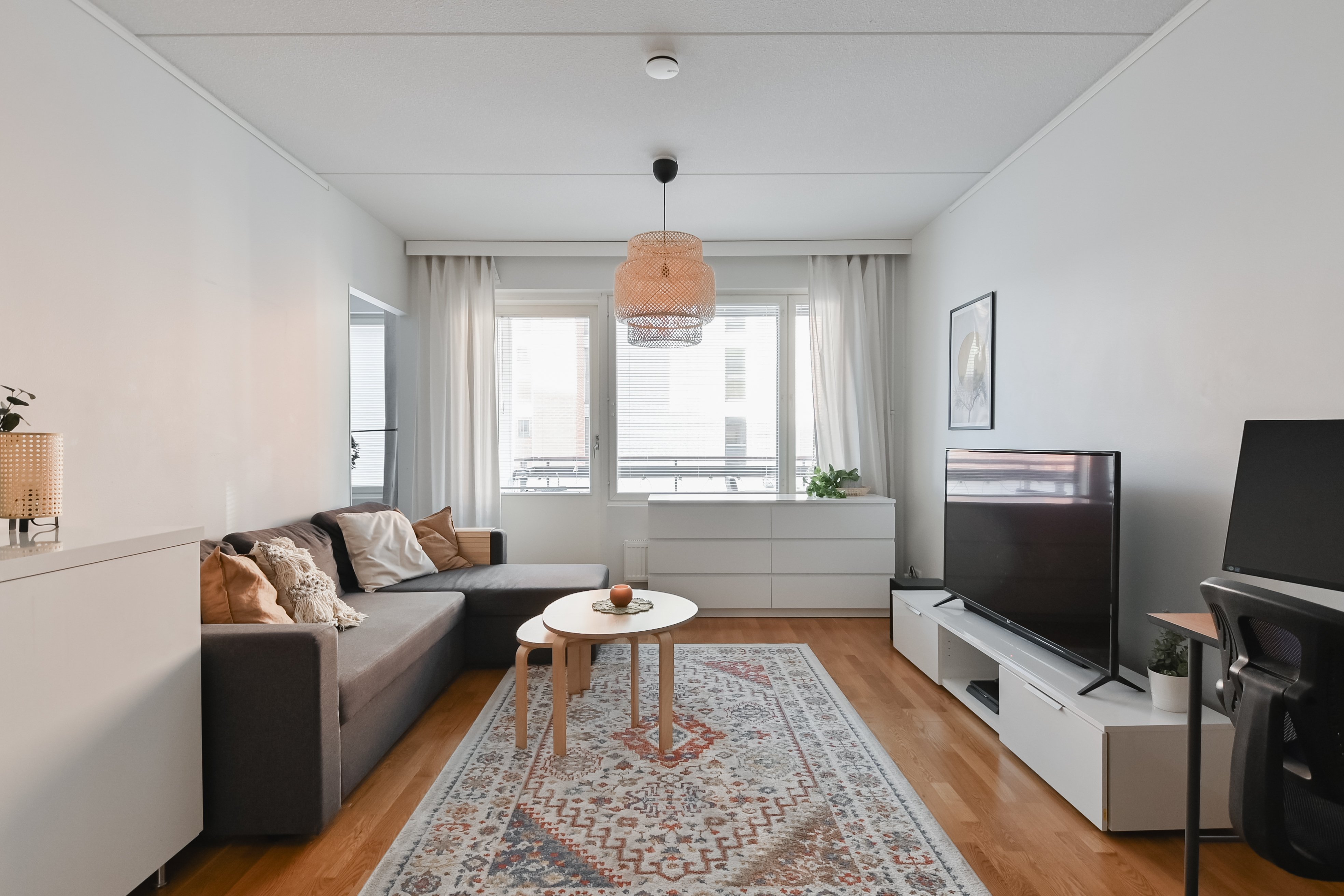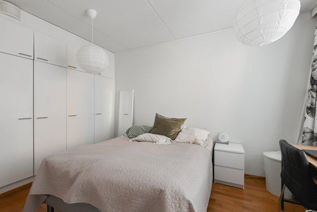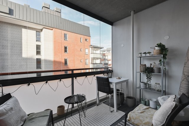 Neljännen kerroksen valoisa muuttovalmis kaksio. Kodin keittiö ja oleskelutila yhdistyvät yhdeksi isoksi tilaksi luoden tilantuntua. Oleskelutilaan mahtuu niin ruokailuryhmä kuin sohvakin, oleskelutilasta löytyy myös kulku isolle lasitetulle parvekkeelle joka on kuin yksi huone asuntoon lisää. Tilavaan makuuhuoneeseen mahtuu työpöytä tarvittaessa ja kaapistot lisäävät säilytystilaa mukavasti tehden arjesta sujuvaa. Kodin kylpyhuone- sekä saunatilan ovat reilun kokoiset ja kaikelle tarvittavalle löytyy oma paikkansa leikiten. Häkkivarasto sijaitsee asunnon kanssa samassa kerroksessa ja hissillä pääset vaivattomasti autohalliin. Autohallipaikan osakkeet ovat erillisillä osakkeilla ja paikan voit lunastaa itsellesi (8000€) lisähintaan.