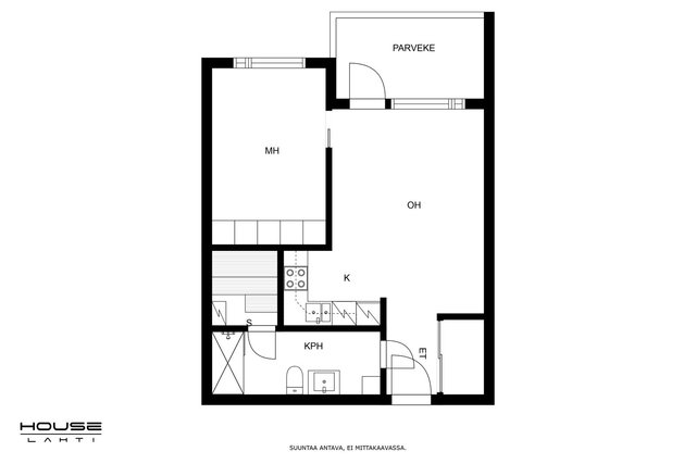 2h, avokeittiö, kph/wc, s, lasitettu parveke