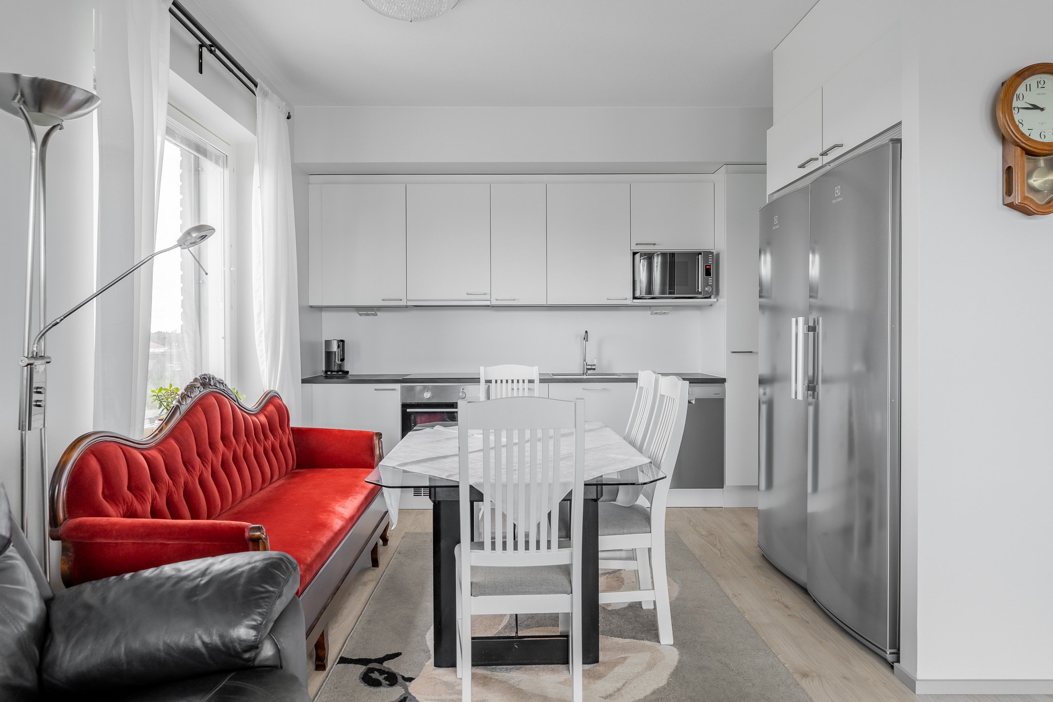 Asunto sijaitsee talon ylimmässä kerroksessa, mikä takaa rauhallisen asumisen sekä kauniit näkymät. Kodin sydämen muodostaa avara ja valoisa olohuone, joka yhdistyy tyylikkääseen avokeittiöön. Tilava lasitettu parveke jatkaa olohuonetta ja tarjoaa ihanan lisähuoneen keväästä pitkälle syksyyn.
