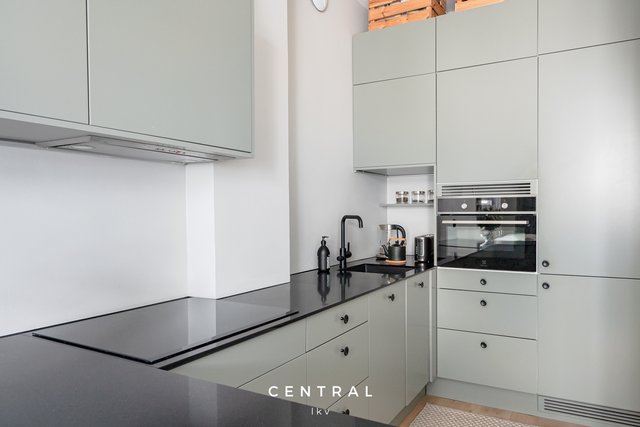 Keittiö on varustettu nykyaikaisilla laitteilla, kuten induktioliedellä, erillisuuni/micro ja kvartsikomposiittitasoilla.