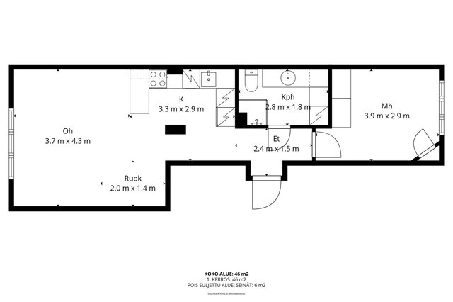 - Ei tarkistusmitattu. Pinta-alat saattavat tämän ikäisissä kohteissa (yhtiö rekisteröity ennen 01.01.1992) poiketa olennaisestikin asuinrakennusten nykyisten mittaustapojen ja standardien (SFS 5139) mukaan laskettavasta asuintilojen pinta-alasta. Pinta-ala voi siis olla edellä mainittua pienempi tai suurempi.