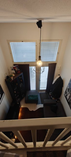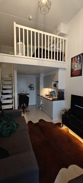 Asunnon huonekorkeus n 4 metriä ja parvellakin n 1,55 metrin korkeus.