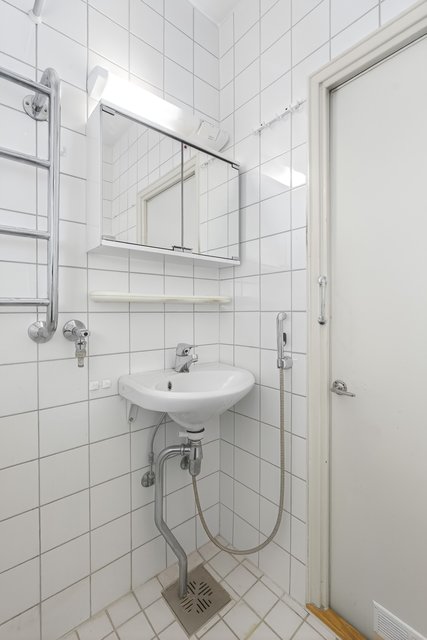 - WC-istuin, suihku, pesukoneliitäntä, peilikaappi, ja pesuallas
