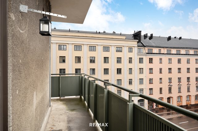 - Läpitalon valoisa päätyhuoneisto, josta näkymät sisäpihoille sekä Mannerheimintien suuntaan.