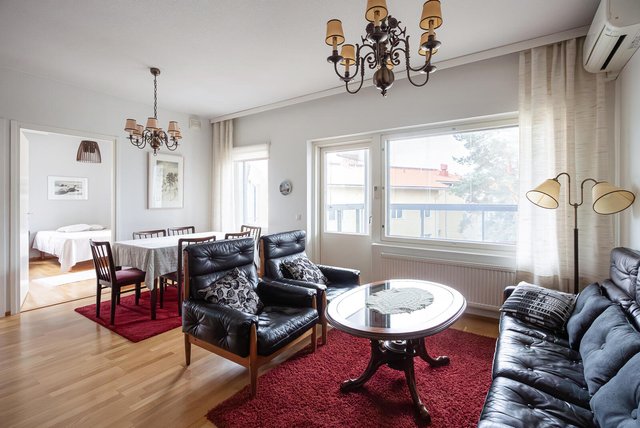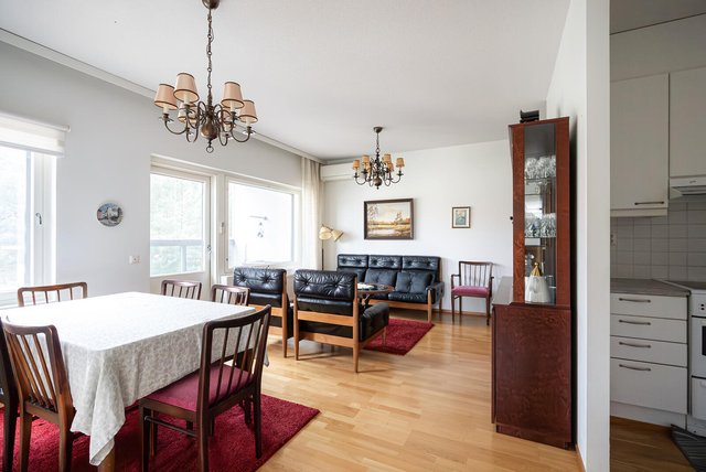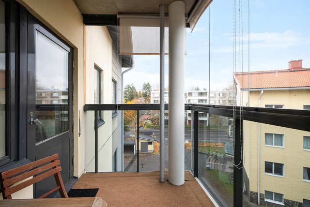 As Oy Järvenpään Mäntylässä on tarjolla ylimmän kerroksen kulmahuoneisto. Valoisan olohuoneen yhteydessä keittiö syvennyksessään, makuuhuoneet aamun puolella. Asunto on hyväkuntoinen, tänne voi muuttaa ilman remontteja. Lasitetulta parvekkeelta on näkymät puistomaiselle ja hyvin hoidetulle korttelin sisäpihalle. Esteettömän mitoituksen pesutiloissa on lattian mukavuuslämpö ja omassa saunassa voi löylytellä milloin vain. Yhtiön sijainti Mannilantiellä on erinomainen, asutaan keskustassa ja palvelut ovat naapurikortteleissa, joten kaiken tarpeellisen tavoittaa kävellenkin.