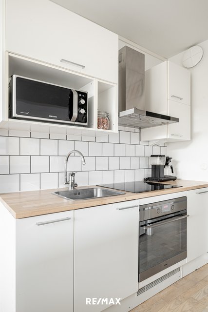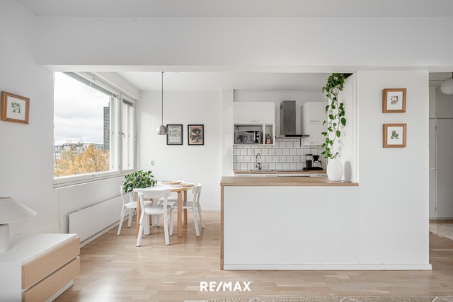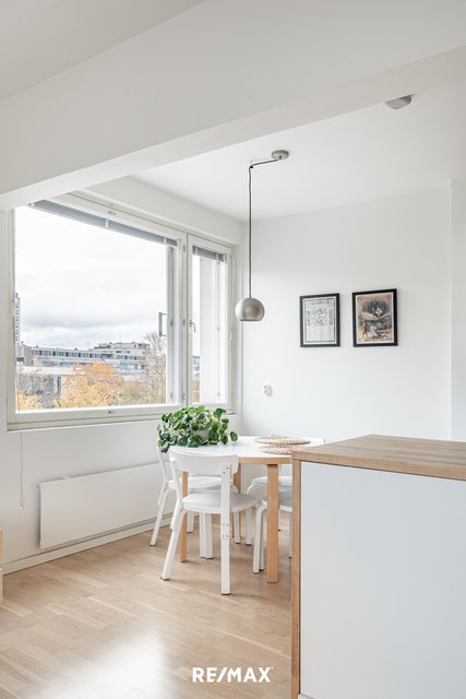 Vuonna 2014 remontoidut keittiö ja kylpyhuone tuovat kotiin raikkaan ja ajattoman ilmeen, eikä muuttajan tarvitse tehdä muuta kuin kantaa laukut sisään. Kauniit vaaleat pinnat, parkettilattiat ja harmoninen värimaailma tekevät kokonaisuudesta viihtyisän ja helposti sisustettavan.
