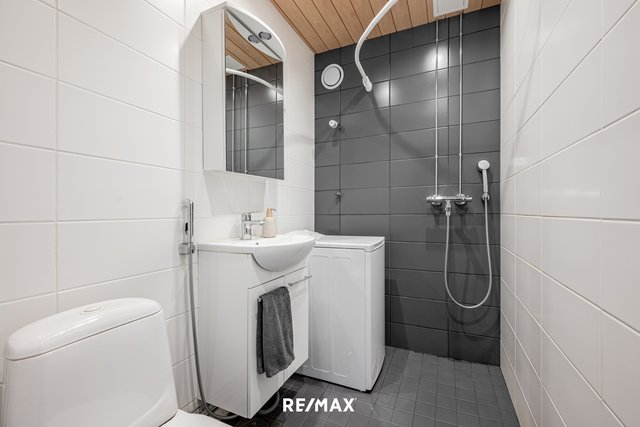 - WC-istuin, suihku, peilikaappi (ei kytketty sähköjä (kaapin valo+pistoke ei toiminnassa)), pesuallas, bidee-suihku, allaskaappi, ja lattialämmitys