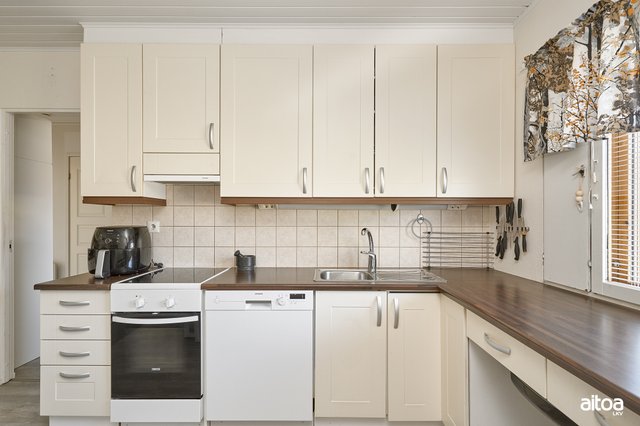 *2007 Keittiöremontti. Liesituuletin vaihdettu 2024, Jääkaappipakastin uusittu 2022, induktioliesi 2018. Yläpohjaa lisäeristetty ekovillalla.