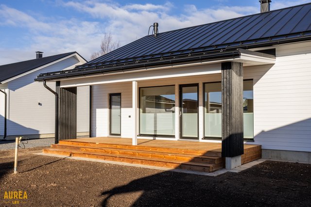Maalämpö vesikiertoisella lattialämmityksellä yhdessä olohuoneen varaavan takan kanssa takaa miellyttävän lämpötilan ja edulliset asumiskustannukset, ja koneellinen ilmanvaihto lämmön talteenotolla pitää sisäilman raikkaana ympäri vuoden. Takapihalla on suuri katettu oleskelu terassi, jonka voi halutessaan lasittaa.