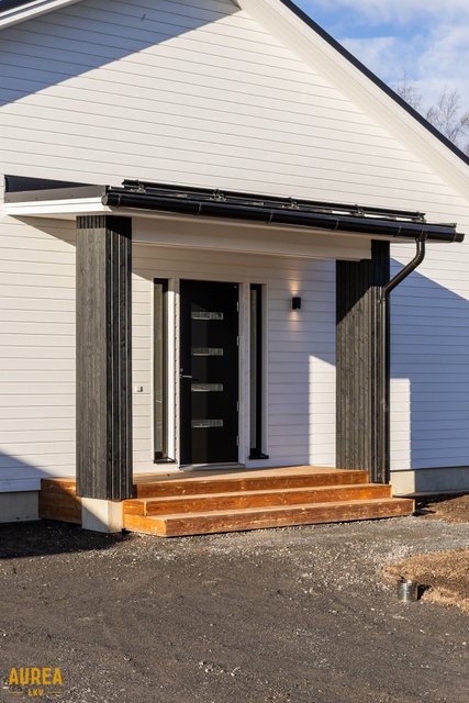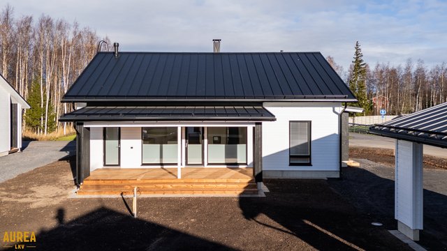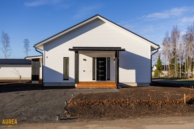 Omakotitalo on laadukkaasti viimeistelty ja JT-Talon vankka kokemus omakotitalojen rakentajana näkyy tässäkin kodissa erinomaisesti. Talon sisäänkäynti sijaitsee talon päädystä, mikä parantaa pohjaratkaisua ja korostaa olohuoneen viiston sisäkaton avaruutta ja valoisuutta. Talo ja autokatosrakennus on sijoitettu loistavasti tontille siten, että pihan käyttö on optimoitu hyvin. Talo sijaitsee rauhallisella ja suojaisalla asuinalueella, josta kulkuyhteydet toimivat niin julkisilla kuin omalla autollakin. Etelä-länteen avautuva piha tarjoaa auringonvaloa ja viihtyisän oleskeluympäristön arkeen ja vapaa-aikaan.