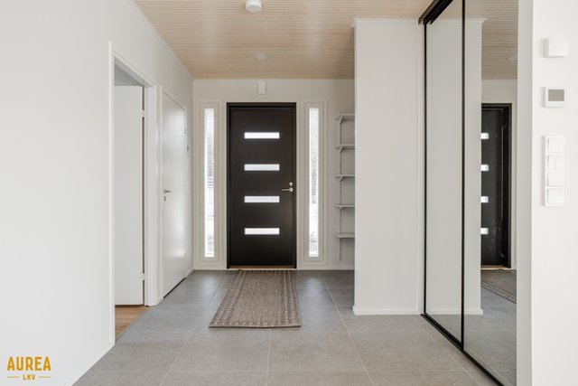 Neljä tilavaa makuuhuonetta ja hyvät säilytystilat tarjoavat sopivat puitteet perheen arkeen. Omalla sisäänkäynnillä oleva kodinhoitohuone helpottaa arkea, ja sen jatkeena on tyylikäs kylpyhuone ja sauna. Pääsisäänkäynnin eteisen yhteydestä löytyy käytännöllinen arkieteinen.