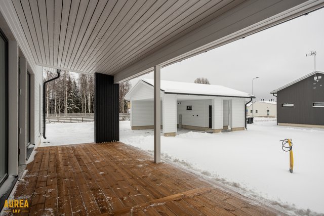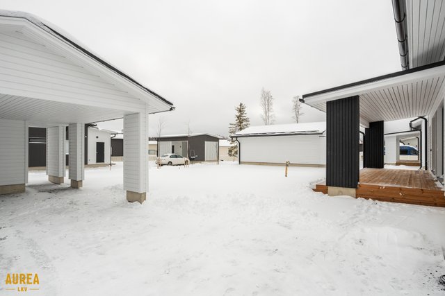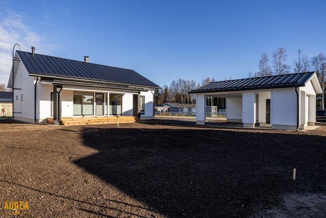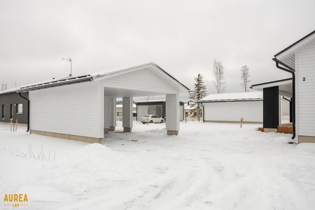 Talousrakennuksessa on lämmin 9,1 m² varasto ja kahden auton autokatos, jossa on voimavirtapistoke sähköauton latausta varten. Alue on luonnonläheinen, rauhallinen ja suosittu pyöräilijöiden ja hiihtäjien keskuudessa, ja lähialueen lenkkeilyreitit tarjoavat erinomaiset mahdollisuudet ulkoiluun ja vapaa-aikaan.Pohjakuva