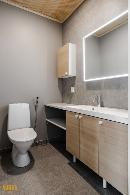 - Kodin erillinen wc on käytännöllinen ja siisti tila, jossa vaaleat ja nykyaikaiset pinnat luovat raikkaan ja miellyttävän ympäristön arkeen. Kylpyhuoneessa sijaitsee kodin toinen wc, viimeistelty samoin modernein materiaalein.