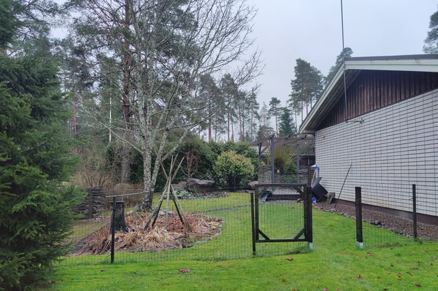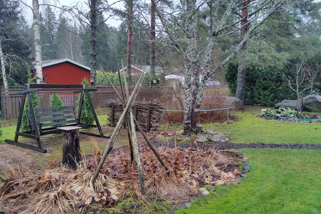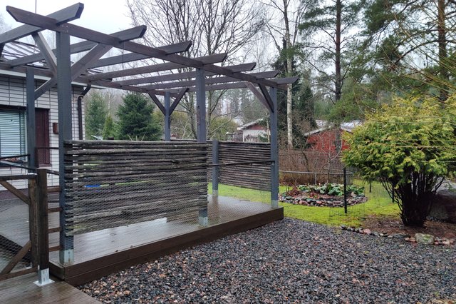 - Terassi ja perkola. Terassi on osin verkotettu lemmikkien vuoksi. Verkot on poistettavissa siististi.