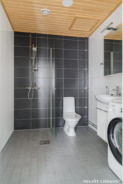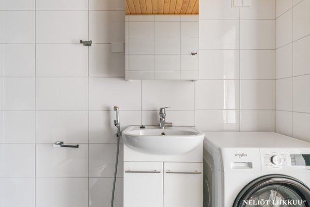 - Hyvänkokoinen kylpyhuone mihin mahtuu hyvin pesutorni.