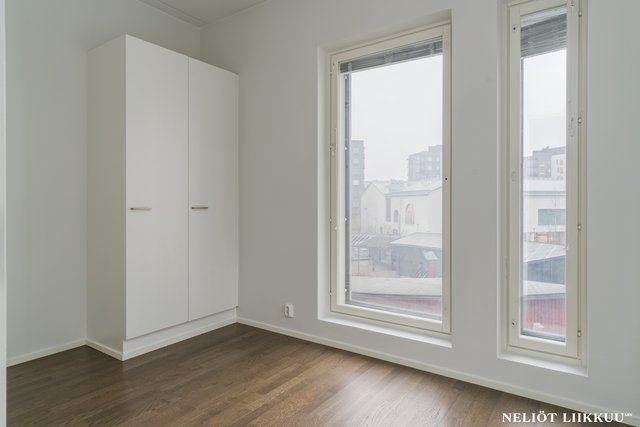 Tämä asunto on nähtävä paikan päällä jos mietit, että asunto on liian pieni kolmioksi neliöiden takia, tulet yllättymään positiivisesti!