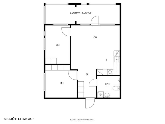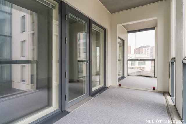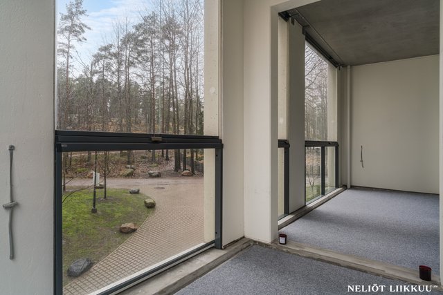 Parasta tässä asunnossa on koko asunnon levyinen lasitettu parveke, mikä toimii lisätilana pitkälle syksyyn ja ihanat metsänäkymät parvekkeelta tuovat rauhallisen tunnelman koko asuntoon.