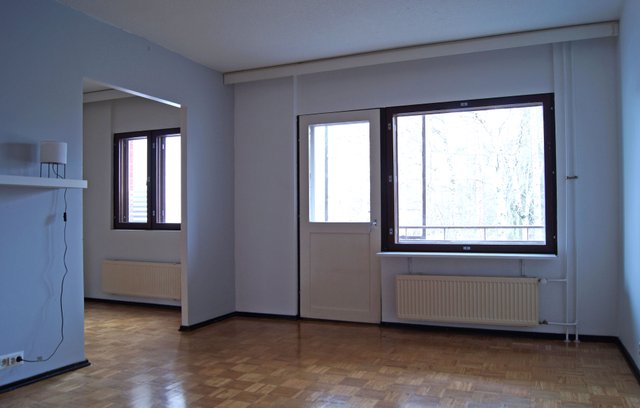 - Tilava olohuone asunnon eteläpuolella. Olohuoneesta käynti parvekkeelle,eteiskäytävälle ja keittiöön.