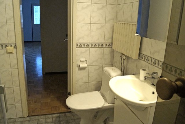 - WC-istuin, suihkukaappi, lattialämmitys, peilikaappi, pesukoneliitäntä, ja pesuallas