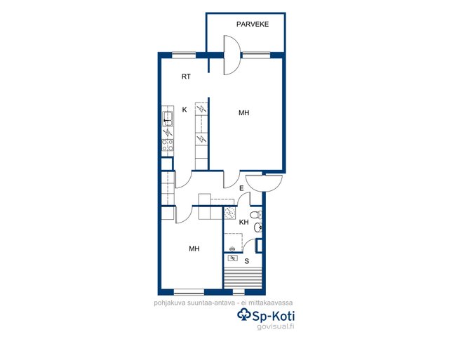 - Erillinen keittiö, kulku olohuoneesta ja eteiskäytävästä.